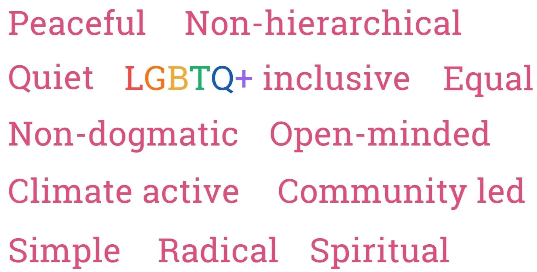 People are drawn to Quaker community for many reasons. It might be because we have no dogma or creed, and welcome people of all faiths and none. It might be because we are an LGBTQ+ inclusive faith community. It might be because we have a strong emphasis on peace, justice, and climate action. Or you might just be seeking a bit of peace and quiet.